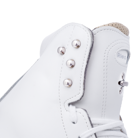 The Riedell 4200 Dance skating boot meets the demands of high-energy ice dancing while providing a lightweight and superior fit! This boot is low-cut allowing the ankle joint a superior range of motion while keeping the foot secure in its heel pocket. The higher dance heel and tapered midsole position the foot forward for balance and quick maneuvering. The padded collar supports the Achilles tendon area with a cushioned dance-cut backstay to guarantee ankle comfort during intricate footwork and toe pointing. The taller toe box and internal forefoot relief increase foot comfort of the sensitive ball joint and little toe during the deepest of edges. In addition, an innovative leather/cork heel and leather outsole provides weight reduction, optimal support and impact absorption.